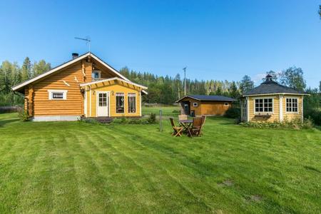 Fernab jeglicher Hektik liegt dieses außergewöhnlich charmante Anwesen, das mit unbeschreiblich viel Liebe zum Detail erbaut wurde. Ideal für mehrere befreundete Pärchen, 2-3 Familien oder kleinere Gruppen.Zum Anwesen gehören ein Hauptgebäude mit 2 separaten Schlafzimmern sowie mehrere kleine Nebengebäude mit jeweils 2-3 Betten, Strandsauna, Grillkota, Sitzschaukel und Feuerplatz mit Unterstand.Alle Gebäude sind in heimeliger Blockbohlenbauweise erbaut und ausgesprochen stilvoll eingerichtet. Egal, ob Sie einfach nur auf dem herrlichen Grundstück entspannen, Beeren und Pilze sammeln oder spannenden Aktivurlaub erleben möchten - hier ist fast alles möglich. Die Umgebung bietet sich an für schöne Paddel- und Angeltouren (auch geführte Ausflüge möglich). Den kleinen See haben Sie fast ganz für sich. Abgesehen vom Hauseigentümer, der auf der anderen Seite des Sees wohnt, beträgt der Abstand zum nächsten Nachbarn 4 Kilometer.Zwei Kanus und Fahrräder können kostenlos vom Hauseigentümer geliehen werden. Rauchsauna und Hotpool-Nutzung (2 Badezuber) auf Bestellung.Transfer und Verpflegung nach Absprache möglich.Hunde auf Anfrage, jedoch nicht im Hauptgebäude.***Mietzeiträume unter 7 Tage auf Anfrage***