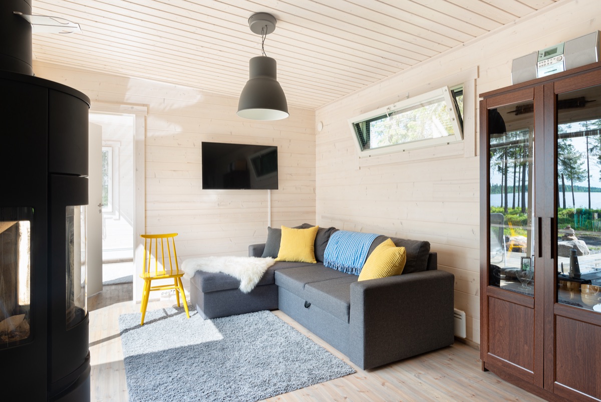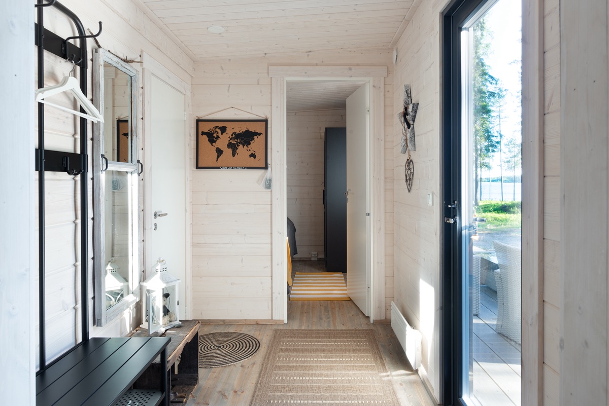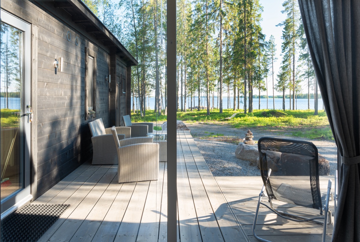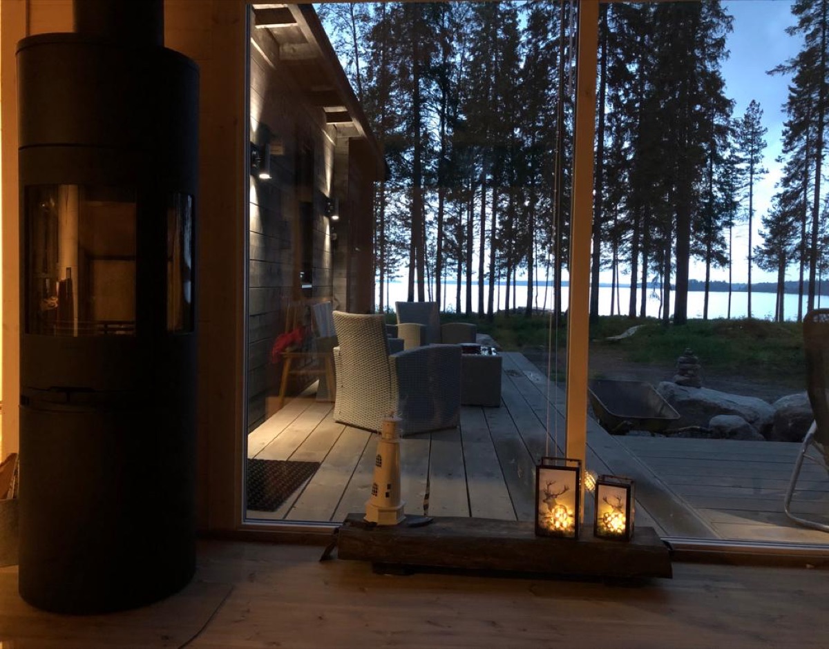 Sehr modernes Ferienhaus im Stil der Tiny-Houses. Sonnige Südlage. Von der Panorama-Sauna aus genießen Sie eine großartige Aussicht auf den riesigen Oulujärvi-See.