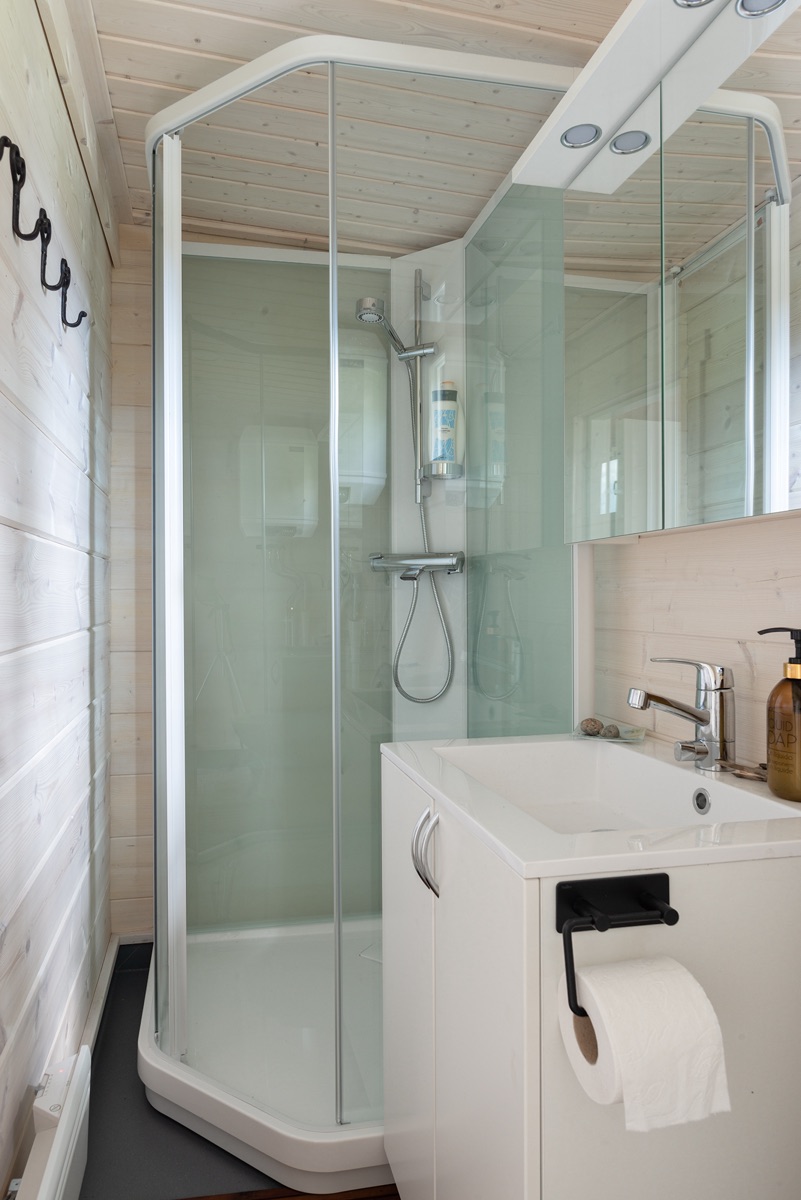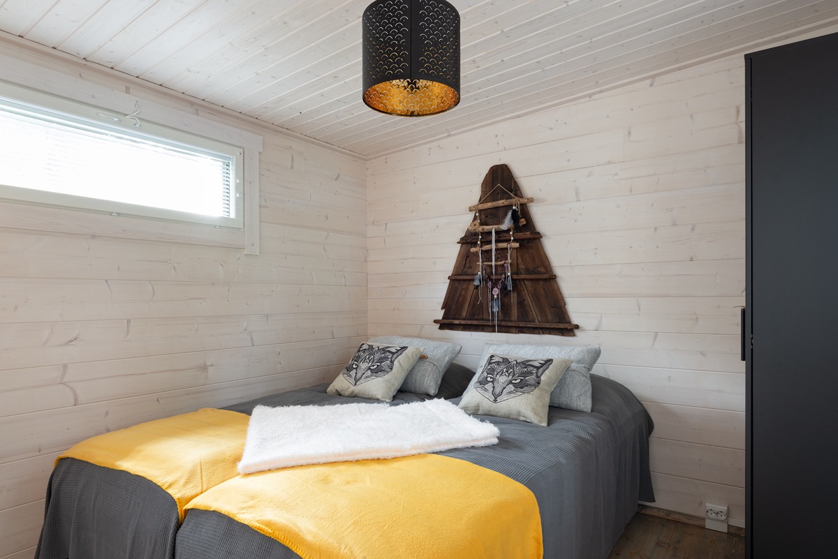 Sehr geschmackvolle und stilvolle Einrichtung. Dank der großen Panoramafenster ist das Ferienhaus lichtdurchflutet und man hat fast das Gefühl draußen zu sein. 4 Betten in 2 separaten Schlafzimmern sowie Aufbettungsmöglichkeit auf dem Sofa. Elektrische Heizung, Elektroherd, gratis WLAN. Panoramasauna mit großer, von außen voll verspiegelter Glasscheibe. Bettwäsche/Handtücher im Preis inklusive.