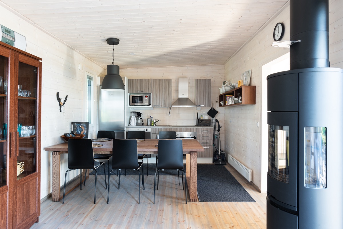 Auf dem Grundstück befinden auch eine kleine Pension und ein weiteres Ferienhaus. Jedes Ferienhaus hat jedoch seinen Bereich und einen eigenen Steg. Das Zentrum der kleinen Gemeinde Vaala mit zwei Supermärkten ist fußläufig erreichbar.