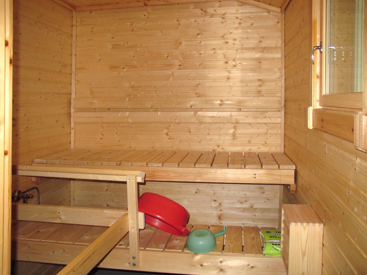 2 Betten, Elektroherd, Fußbodenheizung, eigene Strandsauna + elektrisch beheizte Sauna im Hauptgebäude. Zum Strand und zur Strandsauna führt eine gut ausgebaute Treppe.