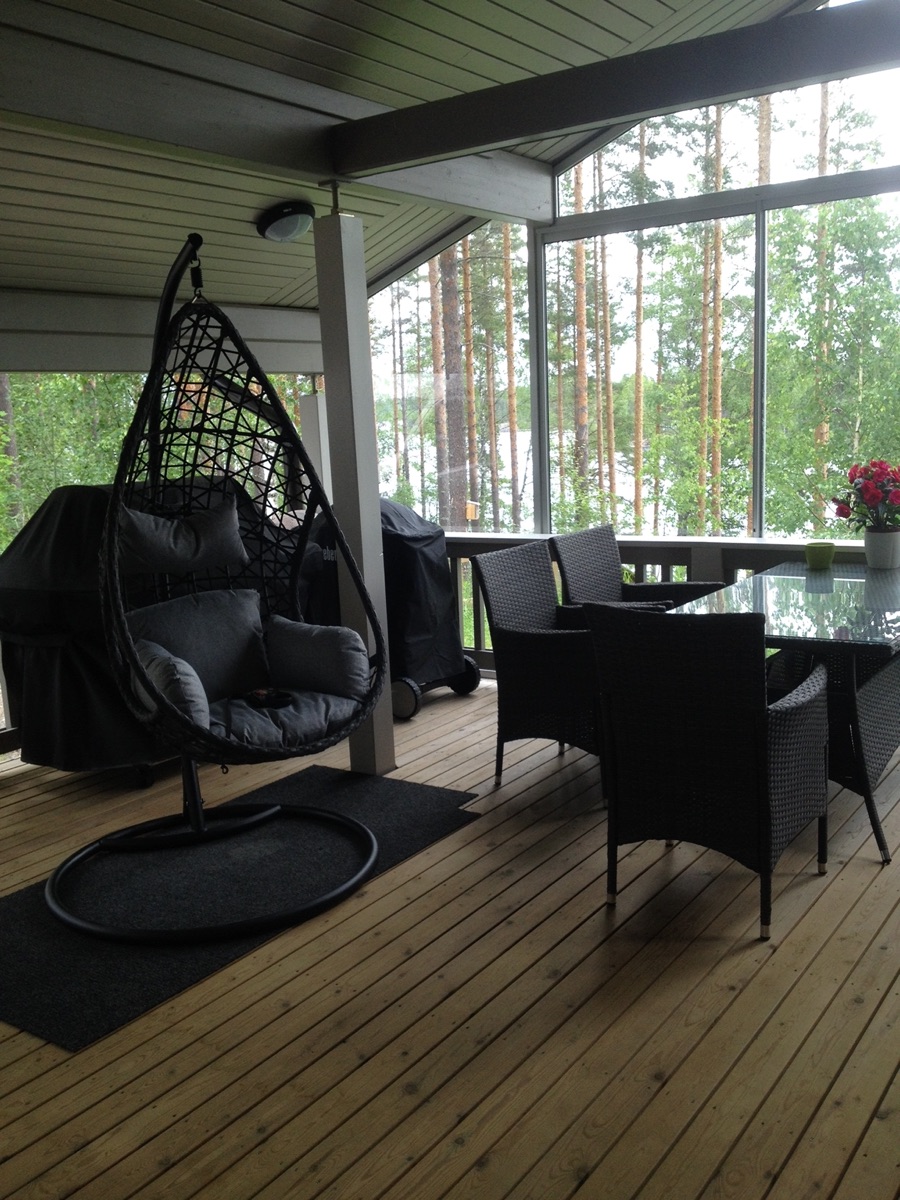 Das Haus konnten wir sehr, um nicht zu sagen penibel, sauber übernehmen. Wir haben uns fast nicht getraut, es für uns „in Besitz“ zu nehmen. Die Ausstattung ist hochwertig (z.B. habe ich erstmalig an einem Induktionsherd kochen dürfen) und komplett. Die Sauna im Haus haben wir genutzt – die Seesauna nicht, obwohl die komplett befüllt war. Die vorhandene Klimaanlage war insbesondere in den ersten Tagen wertvoll, da wegen der Insekten keine größere natürliche Lüftung durgeführt werden konnte. Außerdem war es draußen sehr warm (knapp 30 Grad). Wir haben die überdachte und teilverglaste Terrasse täglich zum Essen genutzt.