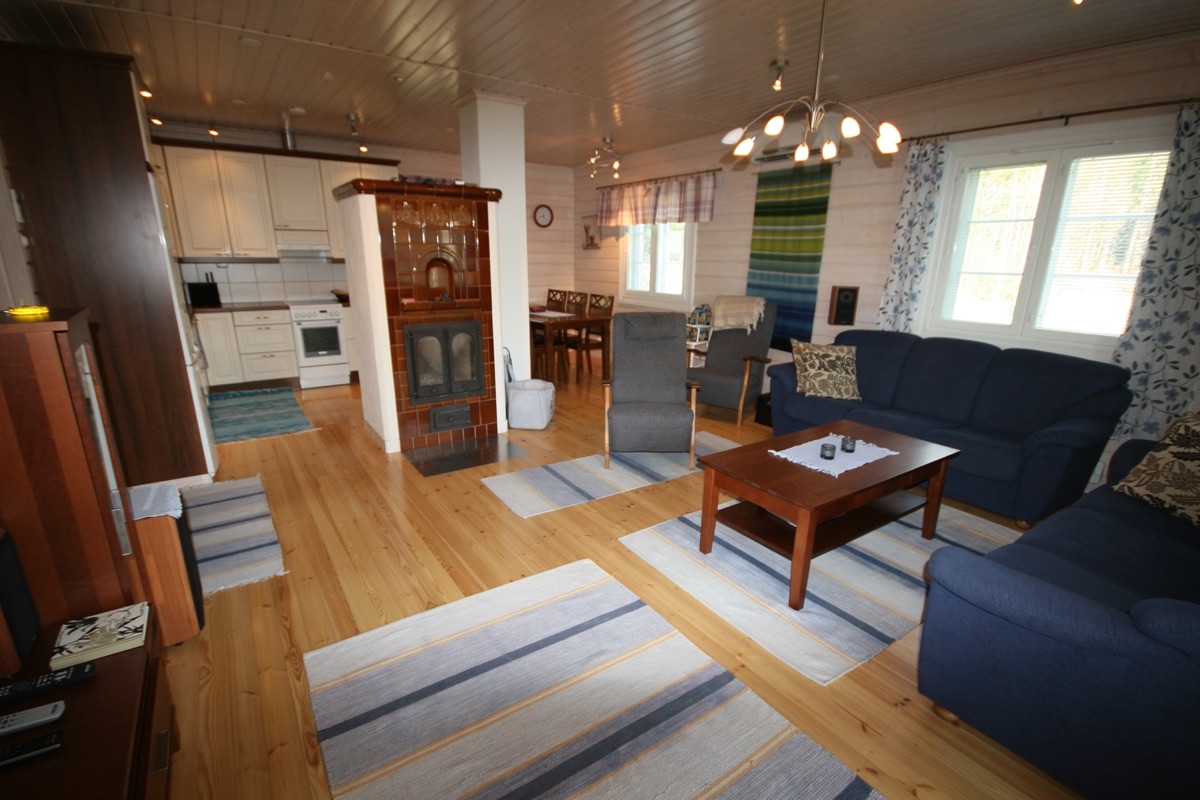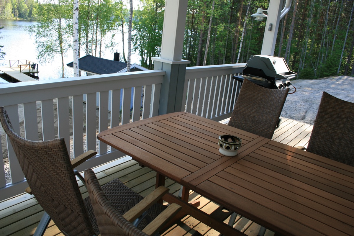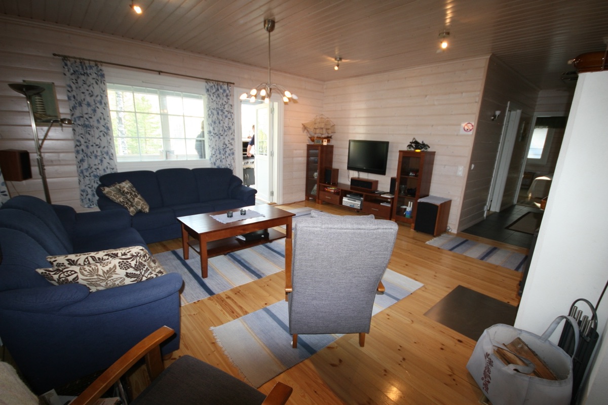 Das Haus ist sehr schön eingerichtet. In der Küche ist fast alles vorhanden und wir haben dort gern gekocht. Im Wohnzimmer haben wir wenig gesessen, weil das Wetter fast die ganze Zeit so gut war, dass wir fast ausschließlich auf der Terrasse bleiben konnten. Die Terrasse ist überdacht und wir waren vor der direkten Sonnenstrahlen geschützt. Nur in der Mittagszeitszeit haben wir uns einen Schattenplatz gesucht. Natürlich haben wir die Strandsauna jeden Tag genutzt. Das Wasser des Sees ist ganz sauber.
