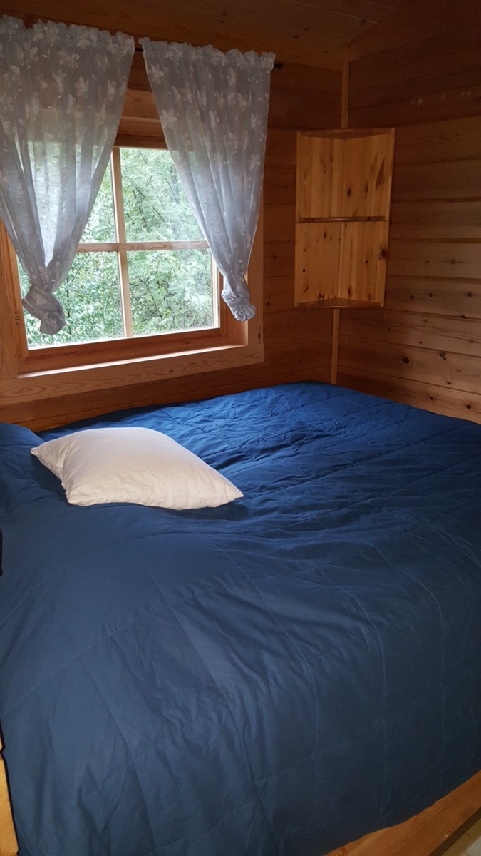 2 Betten, elektrische Heizung, Elektroherd, fließendes warmes und kaltes Wasser, geruchsneutrale Biotoilette. Überdachte Veranda, Filetiertisch.
