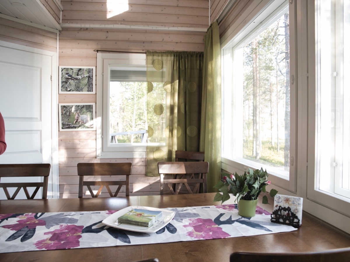 Ein wunderbar gemütliches und helles Ferienhaus mit herrlichem Ausblick auf den Anetjärvi-See in Lappland.