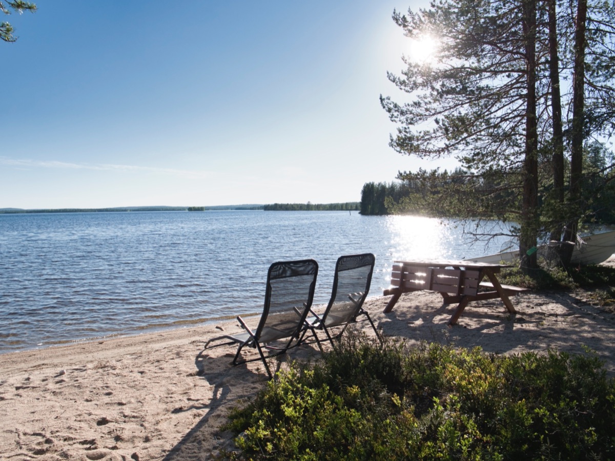 Das Ferienhaus liegt zusammen mit einigen anderen Hütten sowie einem kleinen Caravan-Platz direkt an einem breiten, feinsandigen und flach abfallenden Sandstrand. Extrem ruhige Gegend. Ideal zur vollkommenen Entspannung. Falls zwei Familien zusammen Urlaub machen möchten, kann das Nachbarhaus ebenfalls gebucht werden. Der komplette Seenabschnitt vor dem Ferienhaus gehört dem Hauseigentümer. Deshalb dürfen Sie hier ausnahmsweise sogar ohne staatliche Angellizenz fischen.