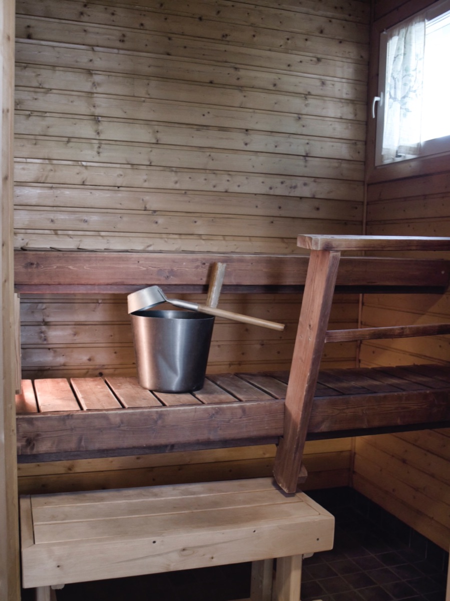 Strombeheizte Sauna im Haus. Außerdem gibt es eine kleine gemeinschaftliche holzbeheizte Strandsauna sowie eine größere Strandsauna (ca. 500 m entfernt), die auf Wunsch für einige Stunden oder einen Abend gegen Gebühr für die private Nutzung gemietet werden kann. Gemeinschaftliche Grillhütte und Wäschestube.