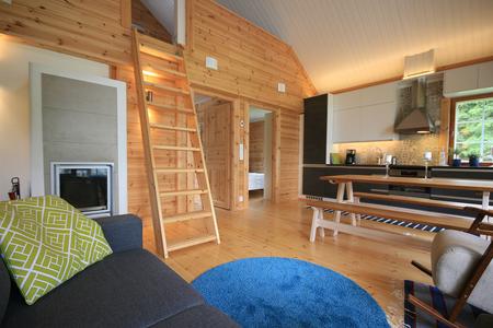 Moderne und freundliche Einrichtung. 2 Schlafzimmer im Erdgeschoss (Doppelbett und ausziehbares Bett) + weitere Schlafmöglichkeiten auf Matratzen im offenen Obergeschoss, welches über eine steile Treppe zu erreichen ist und auch als Fernsehzimmer dient. Elektrische Heizung, Elektroherd, gratis WLAN, Gartenspiele (Frisbee-Golf, Mölkky) und Trampolin.