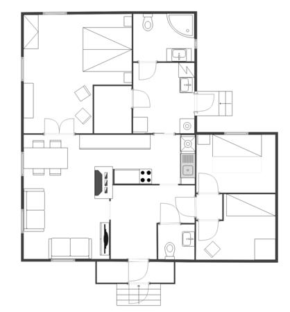Sehr gepflegte Einrichtung. 4 Betten, verteilt auf 3 Schlafzimmer. Aufbettung für eine 5. Person möglich (eines der Einzelbetten ist ausziehbar als Doppelbett). Elektrische Heizung, Elektroherd, Klimaanlage/Luftwärmepumpe, Feuerstelle, gratis W-LAN (5G), eigene Strandsauna.