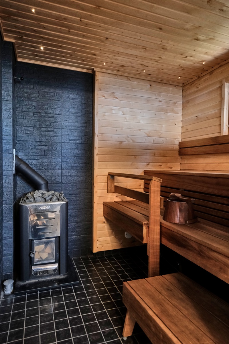 Da wir am Heiligabend erst gegen 19 Uhr ankamen, hat uns Mikko nach Rücksprache das Ferienhaus offen gelassen und in die Einfahrt eine Kerze gestellt, sodass wir die Abzweigung leicht gefunden haben. Bei Ankunft fanden wir eine warme Hütte mit Christbaum vor. Die Kommunikation mit Mikko verlief reibungslos. Auf unsere Bitte hin hat er mit uns ein Eisloch gebohrt, sodass wir nach der Sauna (wunderschön, holzbefeuert) ein erfrischendes Bad im See nehmen konnten.
