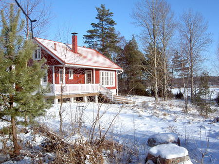 Die Insel Korppoo ist mit ihrem charmanten Dorfkern, der Kirche und dem kleinen Einkaufsladen auch im Winter wie geschaffen für einen idyllischen Urlaub. Eine Eisangelausrüstung kann kostenlos vom Hauseigentümer geliehen werden.