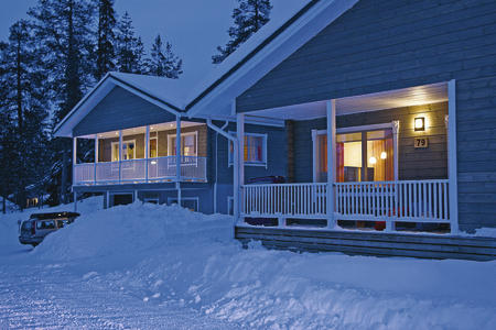Moderne Doppelhaushälfte direkt im Skizentrum Salla. Geschmackvoll ausgestattet und gemütlich eingerichtet. Zu der Ferienhausanlage gehört auch ein Restaurant, das auf typisch lappländische Kost spezialisiert ist.