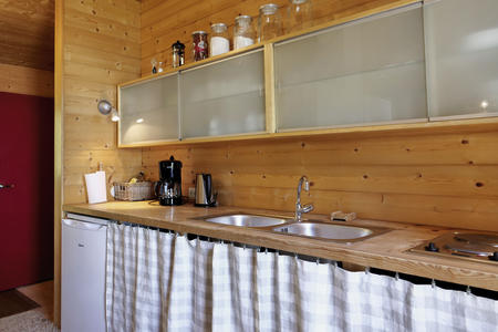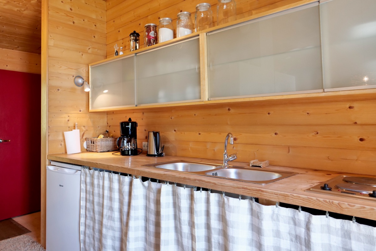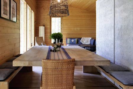 6 Betten, davon 2 in der Strandsauna, 4 elektrische Kochplatten (+zusätzlich holzbefeuerte Kochstelle), holzbefeuerter Backofen, eigene Strandsauna mit großer überdachter Terrasse, fl. Kaltwasser und Freiluftdusche (beides nur im Sommer). Im Winter sorgen der Kamin und ein separater Holzofen im großen Schlafzimmer des Hauptgebäudes und im Schlafzimmer der Strandsauna für angenehme Wärme.