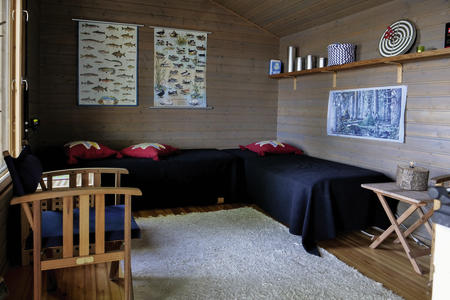 P.S. In diesem Ferienhaus gibt es nur während der Sommermonate fließendes Wasser (kalt). Im Winter wird das Wasser über ein ins Eis geschnittenes Loch aus dem See geholt. Trinkwasser beziehen Sie vom Laden. Man wäscht sich direkt in der Sauna, wo das Wasser im Saunaofen erhitzt und mit kaltem Wasser auf die richtige Temperatur gemischt wird. Außerdem gibt es im Sommer zur frostfreien Zeit eine Außendusche an der Sauna.