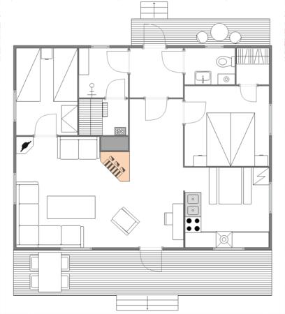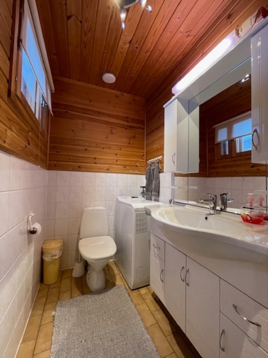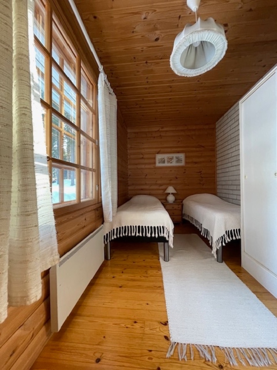 6 Betten verteilt auf 2 Schlafzimmer und das Nebengebäude (Strandsauna). Im Nebengebäude kann nur im Sommer übernachtet werden. Im Winter ist eine Aufbettung im Wohnzimmer möglich. Elektrische Heizung, Klimaanlage (Luftwärmepumpe). Eigene Strandsauna (+ Sauna im Haus), Grillpavillon, Gasgrill und Lagerfeuerplatz.